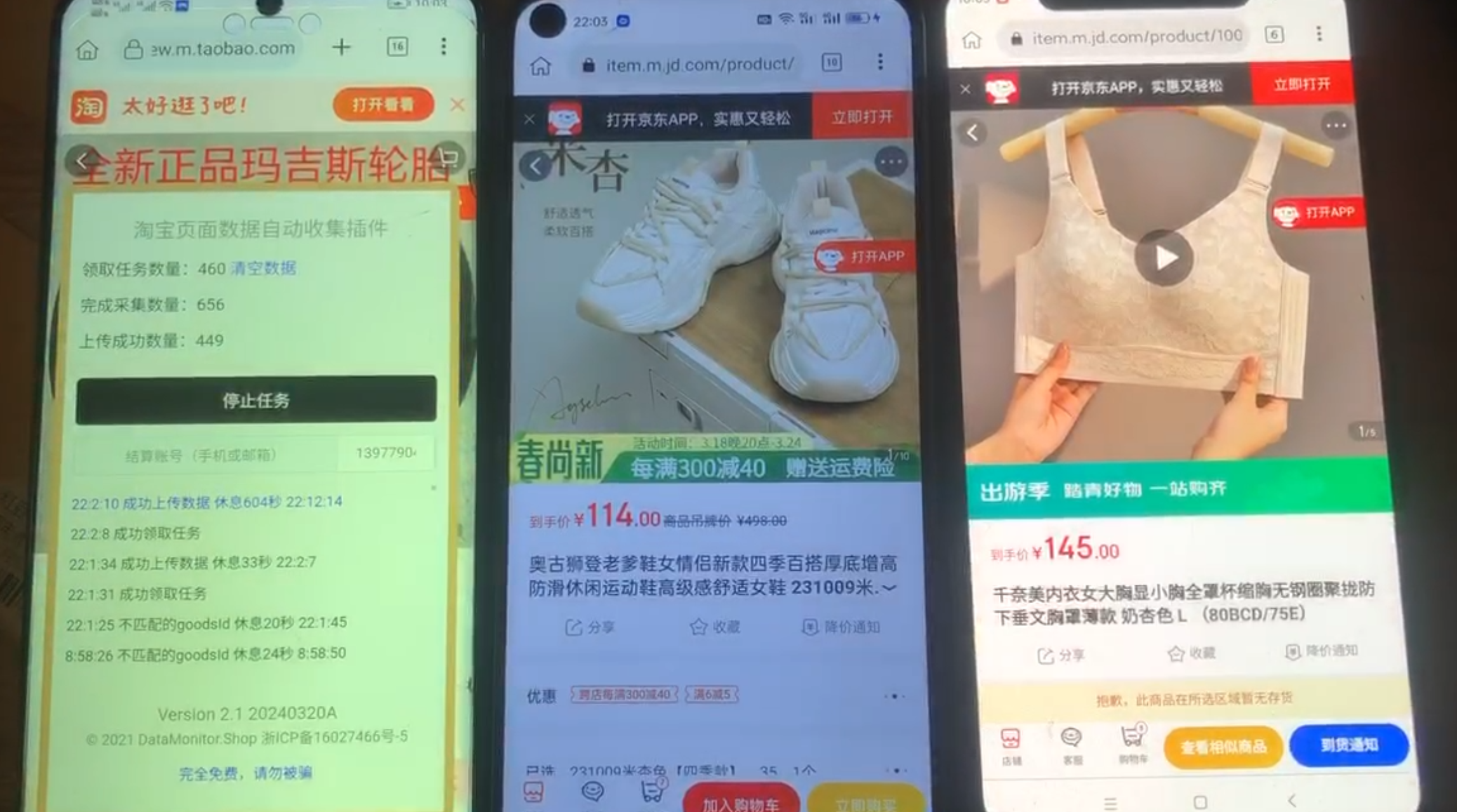 简单来说就是通过脚本全自动浏览拼多多和拼多多的商品,给商家获取曝光率,从而赚钱收益,每采集1000条就是30,单机一天1000条左右,看个人操作,多少数量都有人做到,手机越多收益越高,脚本无需激活可以无限复制,相当于一个手机30左右收益,10个手机就可以300左右的收益了,咱们这边结算,你只需要拿号和设备挂着即可