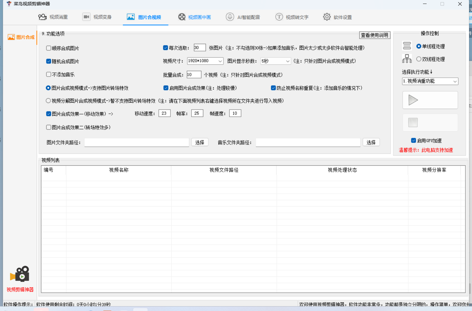 支持横屏竖屏转换,多种效果及增加背景图片等一键合成;