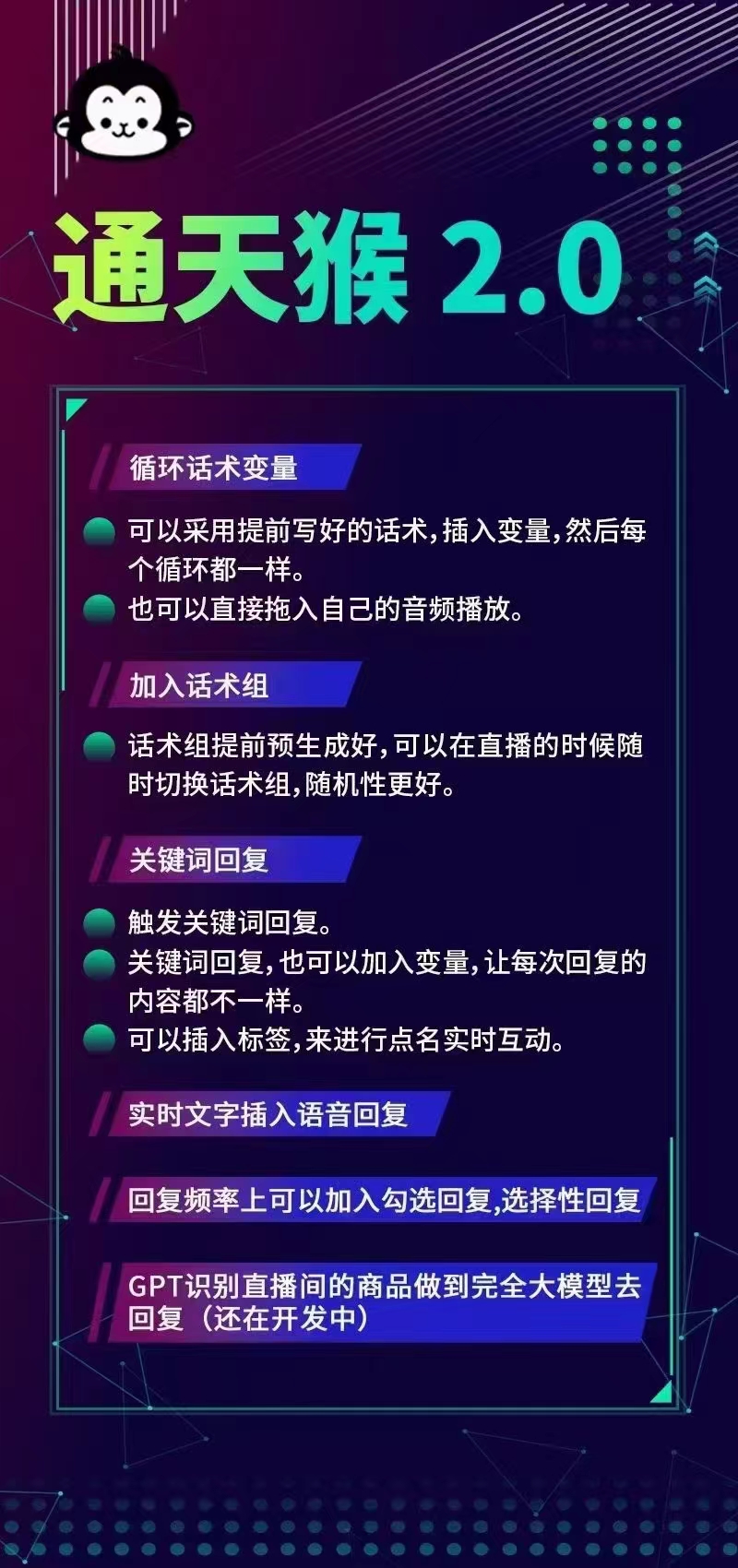 AI通天猴2.0已经正式开测,支持AI语音生成 顺序循环变量 AI关键词回复 文字插入语音 软件支持云端链接推理 私人定制 不考虑电脑配置 培训架设自己的云端服务器