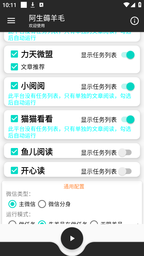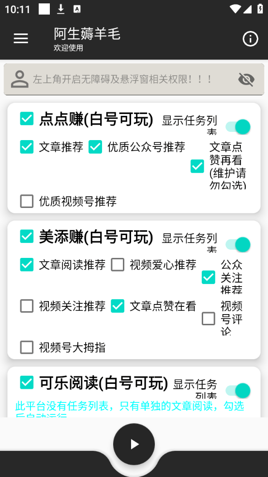 业注意事项:首次运行点点赚时候会让绑定手机号,随便填个确定就可以了。不然会卡主