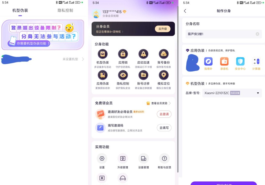 需登录解锁会员功能,除了加速进入不能, 其他主要功能都是可以使用,由于验证较多一些功能需要特定操作使用,进行伪装时请不要直接伪装,先生成成功后再进行自定义伪装!