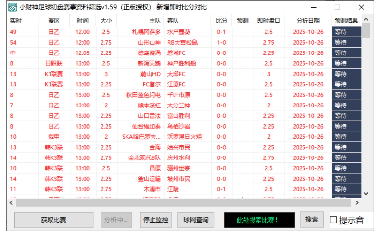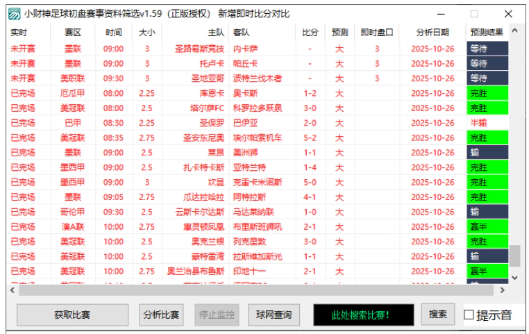 小财神足球初盘滚球预警系统 1.59 版:精准预测,高效预警