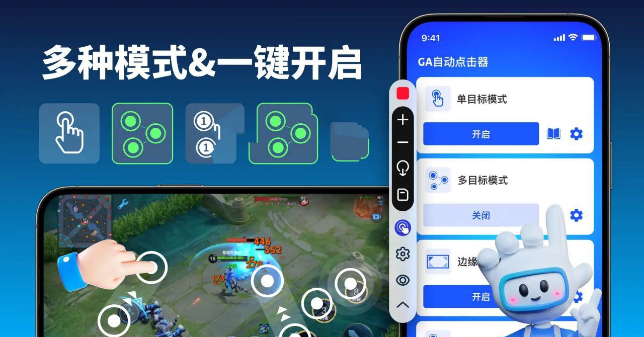 其能够在用户指定的任何应用程序中,根据设定的时间间隔和位置,自动进行重复的点击或滑动动作.