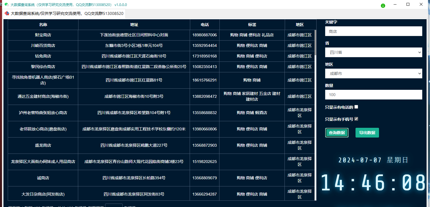 大数据采集地图商家协议是针对百度地图、高德地图、腾讯地图、搜狗地图、天地图、360地图等主流电子地图上的商户企业信息进行实时采集,根据城市关键字、行业关键字进行精准匹配 E语言写的,建议报毒勿下!