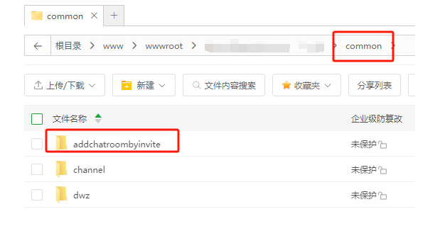 还有一个是落地页,也是对外公开的支付页面,因此还需要将ChatroomPay目录里面的addchatroombyinvite整个文件夹复制至引流宝根目录的common目录内。