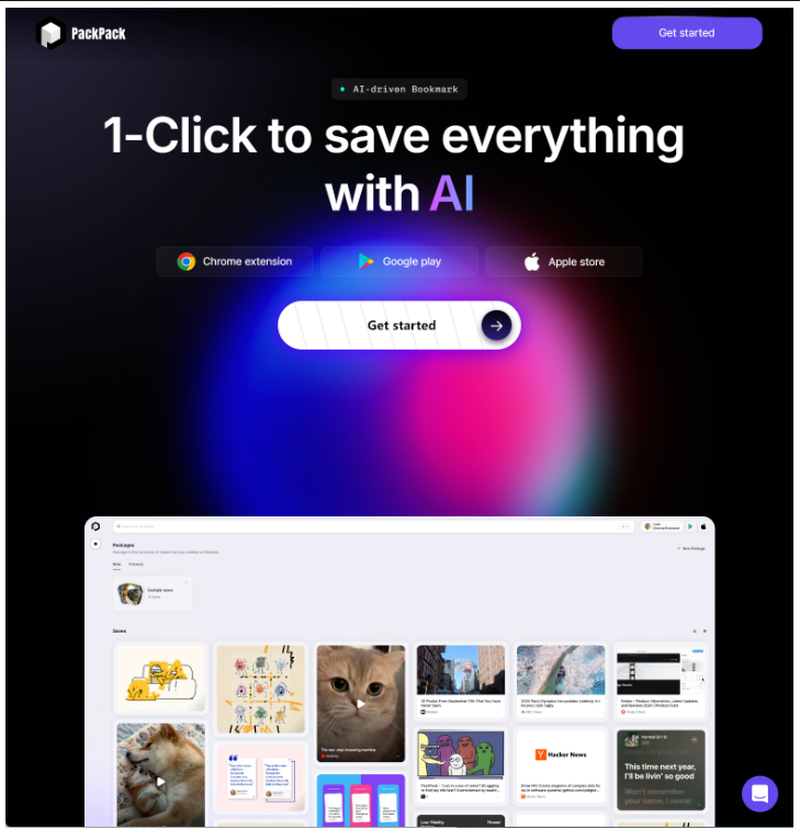 PackPack AI是一款高效的AI书签管理工具,可以帮助用户一键保存并组织各种内容。通过AI技术简化信息收集和管理过程,使用户能够更方便地存储和查找所需资源。PackPack AI不仅支持保存网页链接,还能自动提取和整理重要内容,使用户在需要时能快速找到相关信息,是提高工作和学习效率的实用工具。