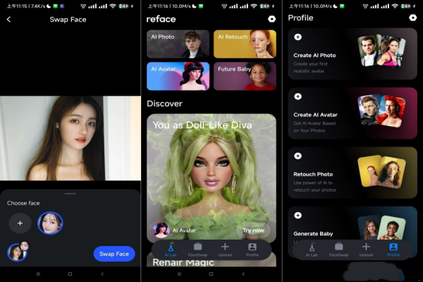 一款利用人工智能技术的手机应用程序,专注于面部交换和视频制作。它允许用户通过简单的自拍,将面部与视频或GIF中的其他人交换,创造出逼真的视频和 GIF动画。