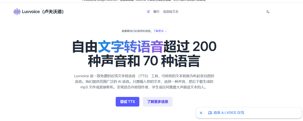 Luvvoice是一个免费的文字转语音工具,提供200多种声音选择,可根据用户需求将文本转化为语音。Luvvoice具有易用性、多语言支持和高质量的声音合成等优势。Luvvoice的定价非常实惠,让用户可以免费使用更多功能,同时也提供付费的高级功能。