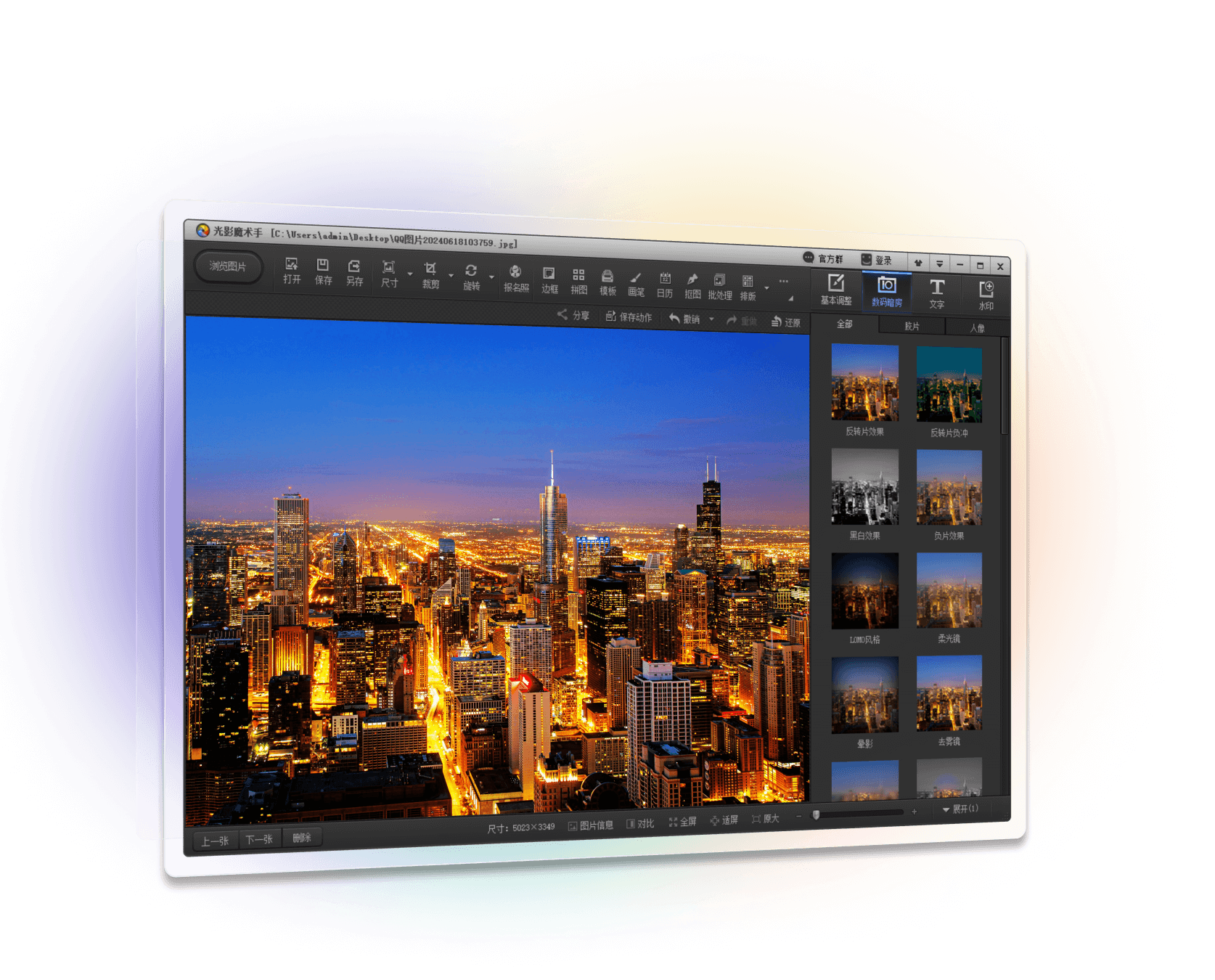 一键秒改千图,同时支持调整尺寸、重命名、滤镜、调色、文字、水印等数十种操作。