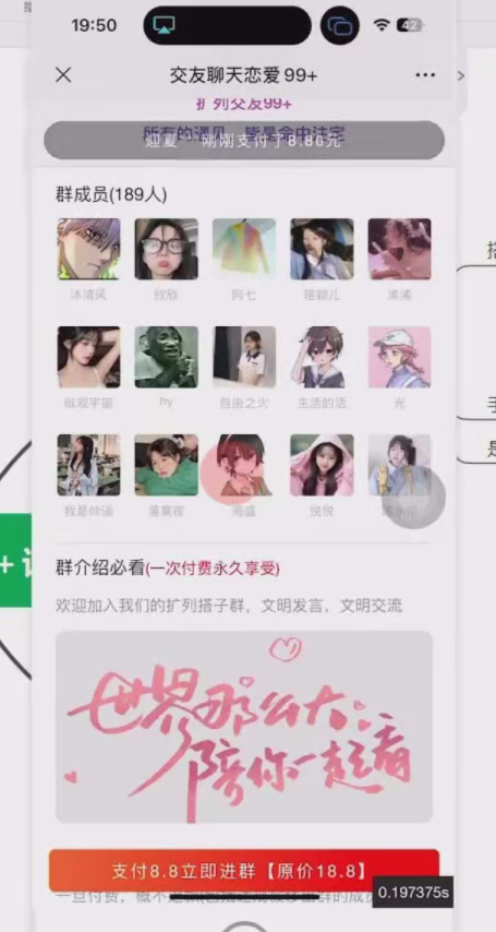 今天给大家带来一个最近比较火的付费进群系统,变线思路有很多,如,搭子,交友群,相亲群,9.9付费群,男粉,美女号,扩列,交友墙